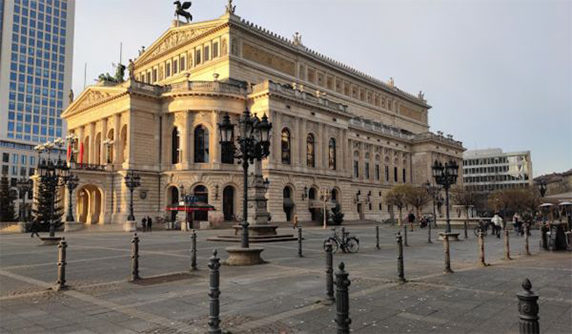 法兰克福古歌剧院是位于德国黑森州美因河畔法兰克福的一座音乐厅,它位于市中心的中央商务区内。今天的古歌剧院建于1880年,当时是该市的歌剧院,1944年被炸弹炸毁。1970年代重建为音乐厅,有一个大礼堂和较小的场地,于1981年开放。大楼前的广场仍被称为歌剧院广场。许多重要的作品都是在法兰克福歌剧院时首次上演的,其中包括1937 年施雷克的《Der ferne Klang》和卡尔·奥尔夫的《布兰诗歌》 。