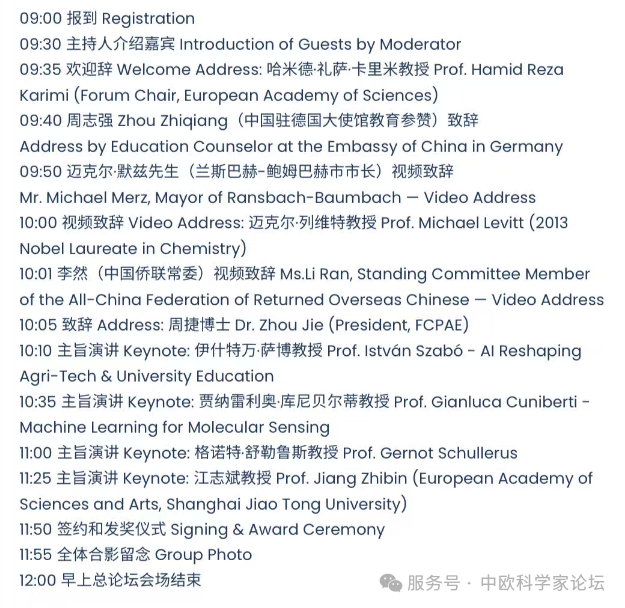 注:中欧科学家论坛(chinaeuropeforum.org)是一个全新的开放式的合作平台,首届中欧科学家论坛已于2024年10月在德国法兰克福成功举办,第二届中欧科学家论坛已于2025年11月初在德国海德堡市成功举办,感谢中国驻德大使馆总领馆、中国科协、中国侨联、诺贝尔奖获得者、德国英国法国国家科学院院士、科技专家等社会各界的大力支持。新华社、人民日报、CCTV中文网、中华网、北欧时报等数十家海内外主流媒体报道。目前中欧科学家论坛签约共建备忘录的机构70余家。在各方的共同努力下,中欧科学家论坛持续发挥重要平台作用,推动中欧乃至全球科技事业不断向前迈进,目前各种专业平行论坛总数达到十余个,成为欧洲华侨主导的最大科技盛会。