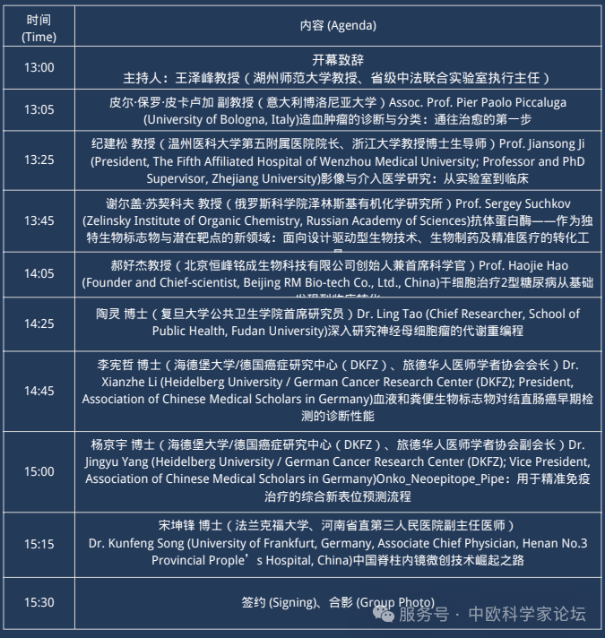 平行论坛1日程:中国留德学者医学及生命科学学会2025年年会